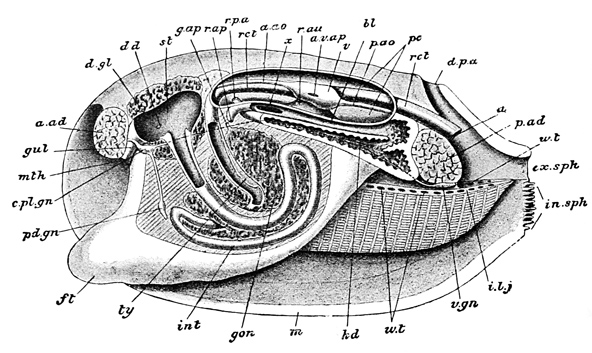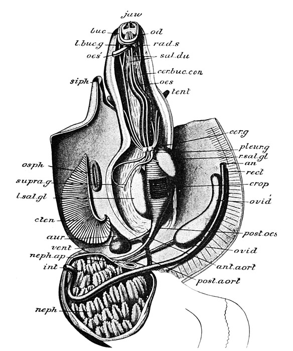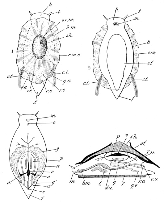 Thanks, also, are due to Messrs. Macmillan & Co. for permission to use cuts from the "Cambridge Natural History," Parker and Haswell's "Zoölogy", and Murray's "Introduction to the Study of Seaweeds"; to Swan Sonnenschein & Co. for the use of cuts from Sedgwick's "Student's Text-book of Zoölogy"; to Wilhelm Engelmann for a cut from "Die natürlichen Pflanzenfamilien" of Engler and Prantl; to Little, Brown & Co. for permission to reproduce illustrations from Agassiz's "Contributions to the Natural History of the United States"; to Henry Holt & Co. for a cut from McMurrich's "Invertebrate Morphology"; to Houghton, Mifflin & Co. for cuts from the "Riverside Natural History" and Agassiz's "Seaside Studies in Natural History"; to the Commonwealth of Massachusetts for the use of illustrations from Verrill's "Report upon the Invertebrate Animals of Vineyard Sound and the Adjacent Waters," Gould's "Invertebrata of Massachusetts" (ed. Binney), and certain fisheries reports; and to the United States government for illustrations taken from Bulletin 37 of the Smithsonian Institution and from reports of the United States Fish Commission.