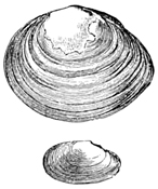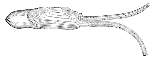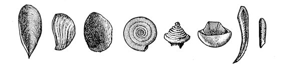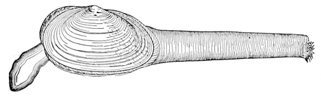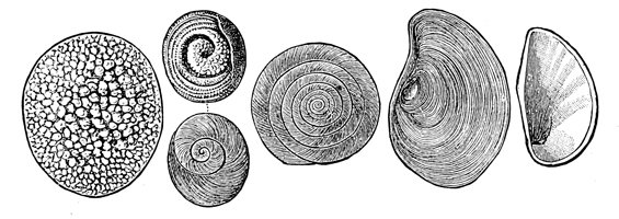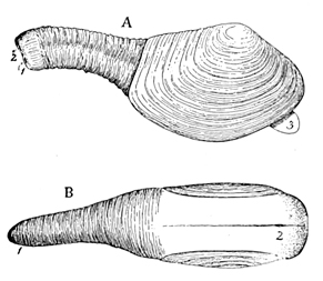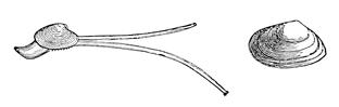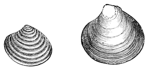 We have to do, however, in this volume, not with the history of the past, nor with the action of physical forces, but with the life of the present, and to find this, in its abundance, one must go down near the margin of the water, where the sands are wet. There is no solitude here; the place is teeming with living things. As each wave retreats, little bubbles of air are plentiful in its wake. Underneath the sand, where each bubble rose, lives some creature, usually a mollusk, perhaps the razor-shell Solen ensis. By the jet of water which spurts out of the sand, the common clam Mya arenaria reveals the secret of its abiding-place. A curious groove or furrow here and there leads to a spot where Polynices heros has gone below; and the many shells scattered about, pierced with circular holes, tell how Polynices and Nassa made their breakfast and their dinner. Only the lifting of a shovelful of sand at the water's edge is needed to disclose the populous community of mollusks, worms, and crustaceans living at our feet, just out of sight.