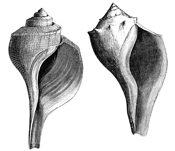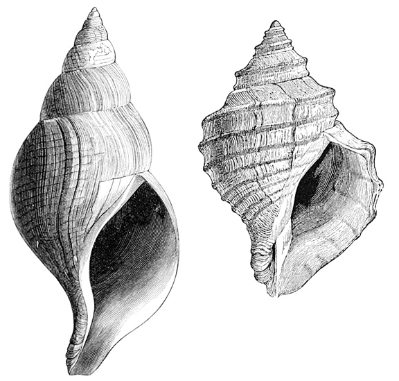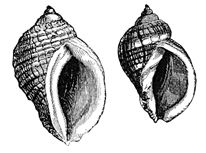 | Fulgur canaliculata (whelk) and egg-cases. | |