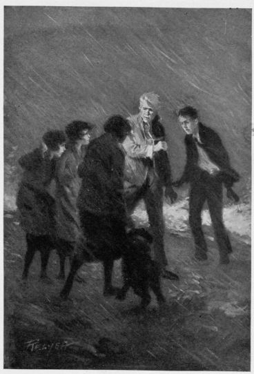 “My name is Barnes—Detective Barnes of the New York force,” he began, “and I’d like to clear up one or two little puzzles here before I go on with this business. It’s a rather peculiar one. I heard this young gentleman refer to a car that was standing in the road near here and say it belonged to one of you young ladies named Eileen. I’d like to inform Miss Eileen that the party who got that little article we were all scrapping for to-night, jumped into her car when he got to the road, tore like mad in it to the station, left it there, and caught the express for New York. I was just in time to see him disappearing in it, but of course I had to walk to the village. I 223 suspected what he was going to do, though, and I went straight to the station and found the car standing there. So I took the liberty of getting in it, driving myself to the village doctor, and then back out here. You will find your car, Miss Eileen, standing just where you left it, but I thought you’d like to know it had had the little adventure!”