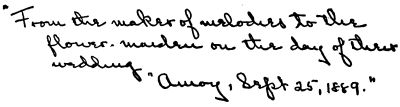 "He wanted a violin! He adored music, played well, but had lost or parted from his instrument in some way. (He didn't explain that, just then.) Well, a missionary's salary isn't munificent, so I couldn't very well grant his wish out of my own pocket, much as I wanted to. The best I could do was to get him a position in a Chinese tea-exporting house in Amoy, where he could earn the money himself. It was better for him to be regularly occupied, anyway.