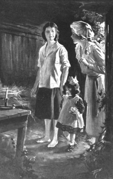 "Thanks," said Doris gratefully. "That'll save me a lot of time." In another moment Sally had beached the boat on the shore directly in front of "The Bluffs," and Doris,[Pg 25] gently disengaging the still sleeping Genevieve, hopped ashore. "I'll see you soon again, Sally," she said, "but I've got to just scamper now, I'm so worried about Mother." She raced away up the steps, breathless with fear lest her long absence had unduly upset her invalid mother, and Sally again turned her boat out into the tide.