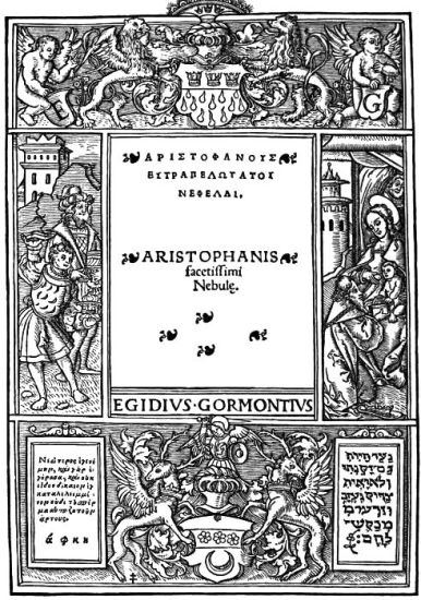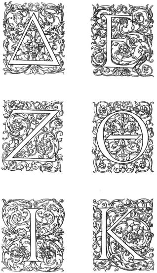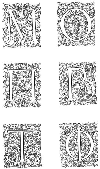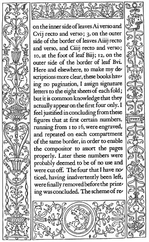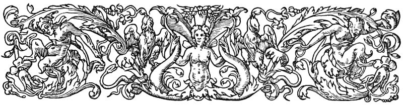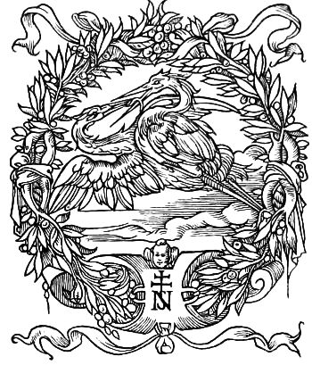 Since such authorities as M. Bernard and M. Renouvier differ as to the ascription to Tory of many of the designs mentioned in this work, it seemed the wiser course to choose for illustration only such subjects as are described by the author, without questioning the soundness of his reasoning or the infallibility of his deductions. The only exception is the beautiful design reproduced on the first page of the Index. This is taken from Robert Estienne's folio New Testament (in Greek) of 1550, where, with two other similar decorations, it occurs in conjunction with the friezes and floriated Greek letters reproduced elsewhere in this volume. They are unsigned, but all are indubitably from the same hand. Although they are not mentioned by M. Bernard, it seems incredible that he should never have seen them.