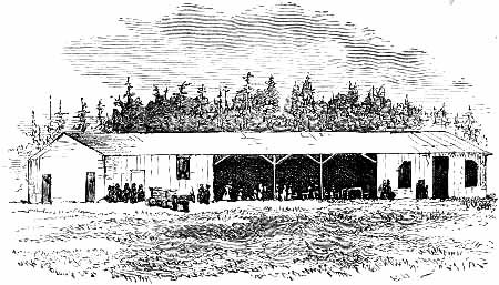 Within the two lines of palisades, and on the western side, was erected the single bakery which was to furnish the munition bread for the prisoners. Upon the hill to the northward, at the distance of two hundred paces from the outer line, was strangely placed the building which was known as the kitchen. The reason why this cookery was placed so far from water, and the direct line of communication with the main gate, the projectors alone can tell. Consider the enormous weight of provisions and water which full rations to even ten thousand men would require daily. Consider, then, the distance from the railway depot, the circuitous route to the entrance of the prison, the mode, and inefficient transportation, and you will have an idea of the ignorance, the carelessness, the perversity or wilfulness, or call it what you will, which prevailed here in the prison system, if system it can be termed.