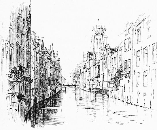 More than those in any of the other towns of Holland do the little water streets of Dortrecht recall Venice, the houses rising abruptly from the canals; only the luminous atmosphere and the shimmering water changing colour like a chameleon, are wanting.