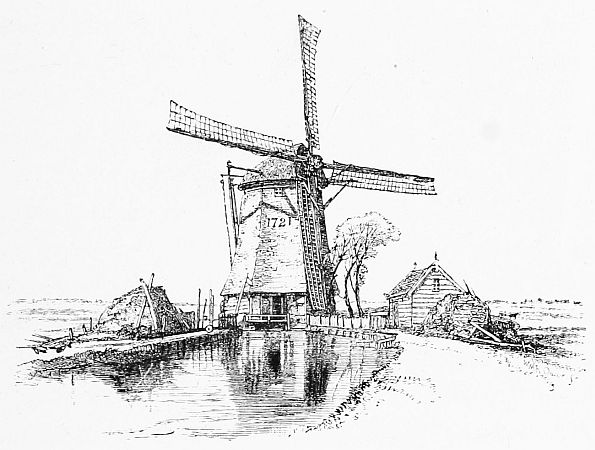 After a delicious breakfast of coffee and thick [7]cream, with rusks, scones, and different kinds of cheese, always an indispensable in Dutch breakfasts, we took to the railway again and crossed Zealand, which chiefly consists of four islands, Noordt Beveland, Zuid Beveland, Schouwen, and Walcheren, and is less visited by the rest of the Netherlanders than any other part of the country. The land is all cut up into vast polders, as the huge meadows are called, which are recovered from the sea and protected by embankments. Here, if human care was withdrawn for six months, the whole country would be under the sea again. A corps of engineers called 'waterstaat' are continually employed to watch the waters, and to keep in constant repair the dykes, which are formed of clay at the bottom, as that is more waterproof than anything else, and thatched with willows, which are here grown extensively for the purpose. If the sea passes a dyke, ruin is imminent, an alarm bell rings, and the whole population rush to the rescue. The moment one dyke is even menaced, the people begin to build another inside it, and then rely upon the double defence, whilst they fortify the old one. But all their care has not preserved the islands of Zealand. Three centuries ago, Schouwen was entirely submerged, and every living creature was drowned. Soon after, Noordt Beveland was submerged,[8]> and remained for several years entirely under water, only the points of the church spires being visible. Zuid Beveland had been submerged in the fourteenth century. Walcheren was submerged as late as 1808, and Tholen even in 1825. It has been aptly asserted that the sea to the inhabitants of Holland is what Vesuvius is to Torre del Greco. How well its French name of Pays-Bas suits the country! De Amicis says that the Dutch have three enemies—the sea, the lakes, and the rivers; they repel the sea, they dry the lakes, and they imprison the rivers; but with the sea it is a combat which never ceases.