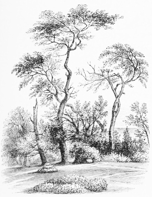 Hurstmonceaux Place was then, and is still, a large but ugly house. It forms a massy square, with projecting circular bows at the corners, the appearance of which (due to Wyatt) produces a frightful effect outside, but is exceedingly comfortable within. The staircase, the floors, and the handsome doors, were brought from the castle. The west side of the house, decorated with some Ionic columns, is part of an older manor-house, which existed before the castle was dismantled. In this part of the building is a small old panelled hall, hung round with stags' horns from the ancient deer-park. The house is surrounded by spacious pleasure-grounds. Facing the east front were, till a few years ago, three very fine trees, a cedar, a tulip-tree, and a huge silver fir. In my childhood it often used to be a question which of these trees should be removed, as they were crowding and spoiling each other, and it ended in their all being left, as no one could decide which was the least valuable of the three. The wind has since that time carried away the cedar. The tulip-tree was planted by our great-aunt Marianne, daughter of Mrs. Henckel Hare, and I remember that my uncle Julius used to say that its gay flowers were typical of her and her dress.