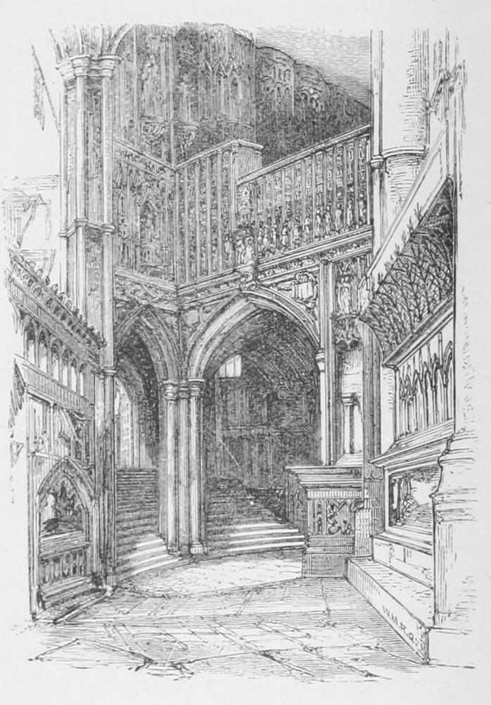 [590] “Nich. Brome slew ye minister of Baddesley church, findynge him in his pier (parlour) chockinge his wife under ye chinne, and to expiate these bloody offences and crimes, he built ye steeple and raysed ye church body 10 foote higher, as is seene at this day in ye churche, and boughte 3 belles for ye same churche. In his epitaph in ye churche, ye building of ye churche and steeple was expressed; he died ye 29 daye of August, ano 1517. I have seen ye king’s pdon for itt, and ye Pope’s pdon, and the penance there enjoined him.”—MS. of Henry Ferrers, quoted by Dugdale. (Nich. Brome really died October 1517.)