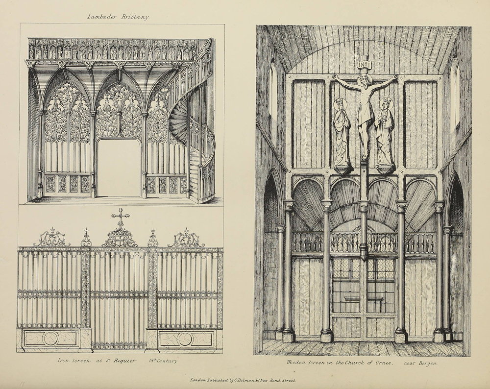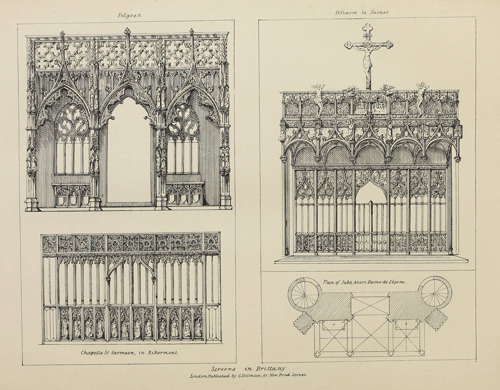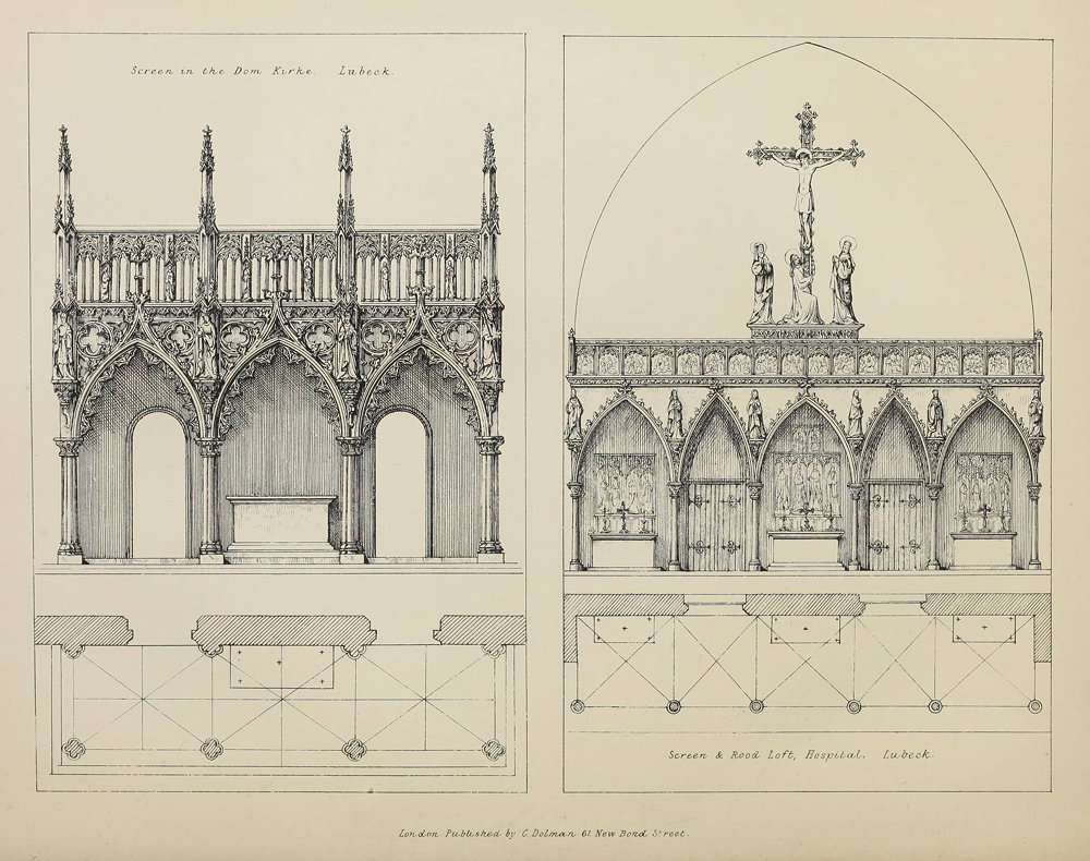 The plates illustrate many of the screens and rood lofts that are described in the text. They have been moved to the end of appropriate chapters, and hyperlinked to the corresponding text. They each bear the inscription "London Published by C Dolman 61 New Bond Street."