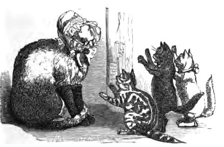 "The old cat, for a wonder, did not get angry; instead of that, she smiled a sweet smile, rubbed her chin with her paw, and in a musical, mewing tone of delighted surprise, exclaimed: