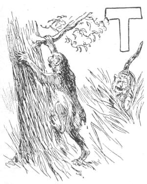 Scarcely had this been resolved upon, when the tiger appeared, marching slowly toward their tree. He was carrying a sheep in his mouth, and his great show of muscular strength and fierce expression seemed to despise danger. The ape who had been chosen to drop on the tiger drew back in fear, and told Shamboo to do that part himself.