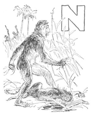 There were two principal species of Apes at this time, the Ammi, who afterwards became known as men, and the Lali, who were the enemies of the Ammi on the other side of the swamp; and, though there had come to be marked differences between the two, (of which we shall presently speak,) they were, at this time, both living together as Apes (the Man-Apes of Biology), and were[15] alike interested in ridding the country of the stronger beasts.