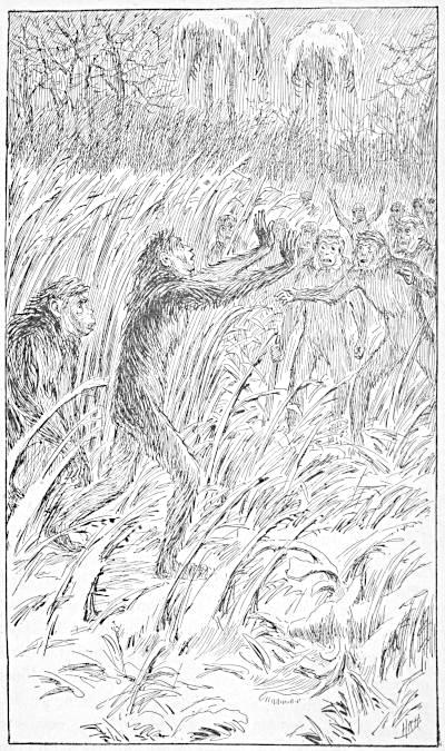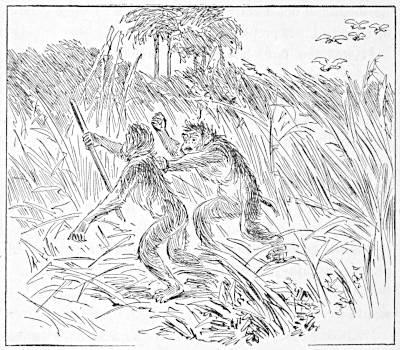 Shamboo picked himself up and, looking round, spied the other two apes coming slowly toward him. He limped back to them with an air of disappointment, rather than of suffering, and, without uttering a word, fell upon the younger ape, who had shown cowardice, and killed him for his breach of military discipline in disobeying orders.