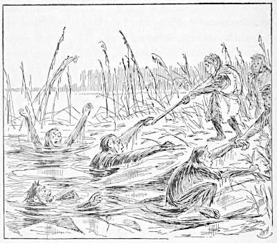Too weak, or too frightened, to follow, Koree now hurried back to give the alarm, when he encountered Sosee on the tree, as we have related. Sosee’s screams and calls to Koree to rescue the child roused some men near by, who now all rushed for the swamp.