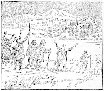 One of their number had been lost, and did not return for many years. He wandered about the Swamp, visiting its many shores, and meeting, like Ulysses, many strange kinds of apes and other beasts. Long did he search for his home, and many times he came near the edge of the Swamp, in sight of Cocoanut Hill; but a perverse mistake each time drove him farther away. He wandered among thickets and vines, crossed streams and hid in marshes. He lived on roots dug from under the snow, and on fish caught under the ice. He suffered many pains and aches and bruises, still seeking his home. Twice he was chased by the mastodon, and four times he fought with catamounts. The stars seemed to wander from their places so that he could not even recognize the heavens; and when he emerged at last from the Swamp it was to look upon an unknown country. Like the Wandering Jew he found no rest for his feet, but went on forever, never finding what he sought. Climbing banks and trees, and walking over ice and rocks, he yet saw nothing familiar, but always something new; and when at last he came within sight of his dwelling it was found to be under a mountain of ice; and as he started to go south, he turned, with his usual fate, to the north, and the traditions of the Ammi say that he is wandering to this day.