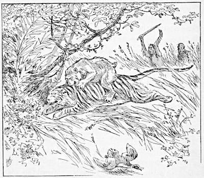 They could not, however, come to the ground while so many savage beasts occupied it. A sleeping ape was liable to suffer death if met by a tiger, especially in recent years when many fights occurred between the two. The Apes, accordingly, conceived the project of ridding the country of the more dangerous animals.