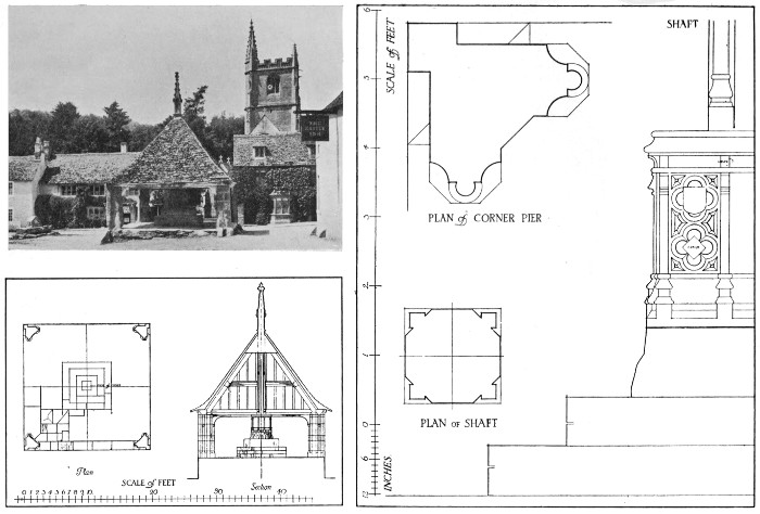 The genesis of this book was an article on "Churchyard Crosses," written by request for the Burlington Magazine, and published therein in September 1918. It was at a time when the hearts of the British people were being stirred to their innermost depths, for the European War was yet raging, and the question of the most suitable form of memorials of our heroic dead, sacrificed day by day, was continually present to us. Nor, though hostilities happily ceased when the Armistice was agreed upon within a few weeks thereafter, has the subject of commemorating the fallen on that account declined in interest and importance. Nay, its claims are, if anything, more insistent than ever, for, the vital necessity of concentrating our energies on the attainment of victory having passed away, the nation is now at leisure "to pour out its mourning heart in memorials that will tell the generations to come how it realised the bitterness and glory of the years of the Great War." Such being the case, it was hoped that it might prove useful to gather together a collection of examples of old crosses and lychgates, as affording the most appropriate form of monuments for reproduction or adaptation to the needs of the present. Too many of the manifestations of modern so-called art betray its utter bankruptcy, because having broken with tradition, it has no resource left but to express itself in wayward eccentricity and ugly sensationalism, the very antitheses of the dignified beauty which the following of time-hallowed precedent alone can impart.