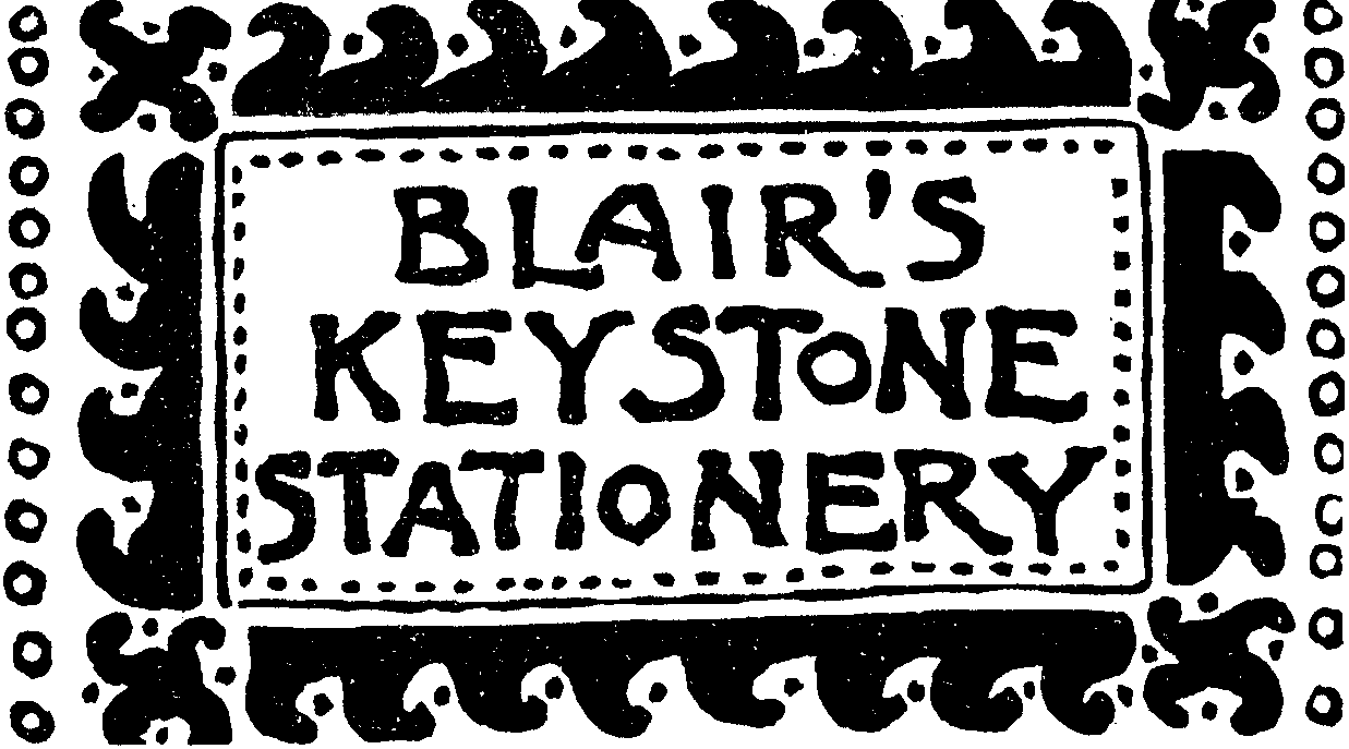 Writing Papers of all finest grades made in the world are to be found in Blair's Keystone Packets—Climax, Paragon, and Good Luck. Send for Samples.