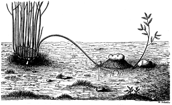 As we have seen, root and foliage are the main life organs of the tree. The trunk and branches serve to carry the crown upward and expose it to the light, which is necessary in order to prepare the food and increase the volume of the tree, and also as conductors of food materials up and down between root and foliage. A large part of the roots, too, aside from giving stability to the tree, serve only as conductors of water and food material; only the youngest parts, the fibrous roots, beset with innumerable fine hairs, serve to take up the water and minerals from the soil. These fine roots, root hairs, and young parts are therefore the essential portion of the root system. A tree may have a fine, vigorous-looking root system, yet if the young parts and fibrous roots are cut off or allowed to dry out, which they readily do—some kinds more so than others—thereby losing their power to take up water, such a tree is apt to die. Under very favorable moisture and temperature conditions, however, the old roots may throw out now sprouts and replace the fibrous roots. Some species, like the willows, poplars, locusts, and others, are especially capable of doing so. All trees that "transplant easily" probably possess this capacity of renewing the fibrous roots readily, or else are less subject to drying out. But it may be stated as a probable fact that most transplanted trees which die soon after the planting do so because the fibrous roots have been curtailed too much in taking up, or else have been allowed to dry out on the way from the nursery or forest to the place of planting; they were really dead before being set. Conifers—pines, spruces, etc.—are especially sensitive; maples, oaks, catalpas, and apples will, in this respect, stand a good deal of abuse.