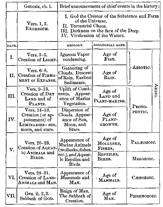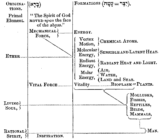 4. A supernatural Origination being assumed, then,[Pg 18] from that first initial act of absolute creation, has the process of formation been gradual, continuous, and uniform—a progressive Evolution from the homogeneous to the heterogeneous, from lower to higher forms, according to a changeless law of uniformity and continuity? or have there been marked, distinct, and successive stages of formation—creative epochs which may be called "new beginnings?" Is the historic unity of creation a unity of Thought, an ideal consecution? or is it simply a physical unity grounded in a material nexus—a genetic connection resulting from the necessary action of physical causes?