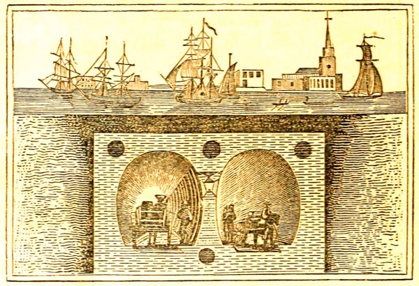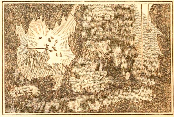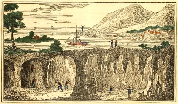 This cut represents, in a striking manner, the mines and caverns as they exist under the land and ocean. The mine here exhibited, is a picture of a salt mine in Poland, Europe. The grotto is under the island Antiparos in the Mediterranean Sea. A mine is a cavern made by man, in digging for the articles found in the earth. A grotto is a cavern formed by nature.
