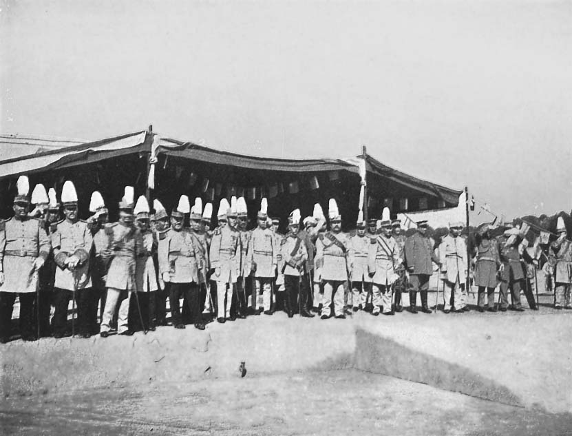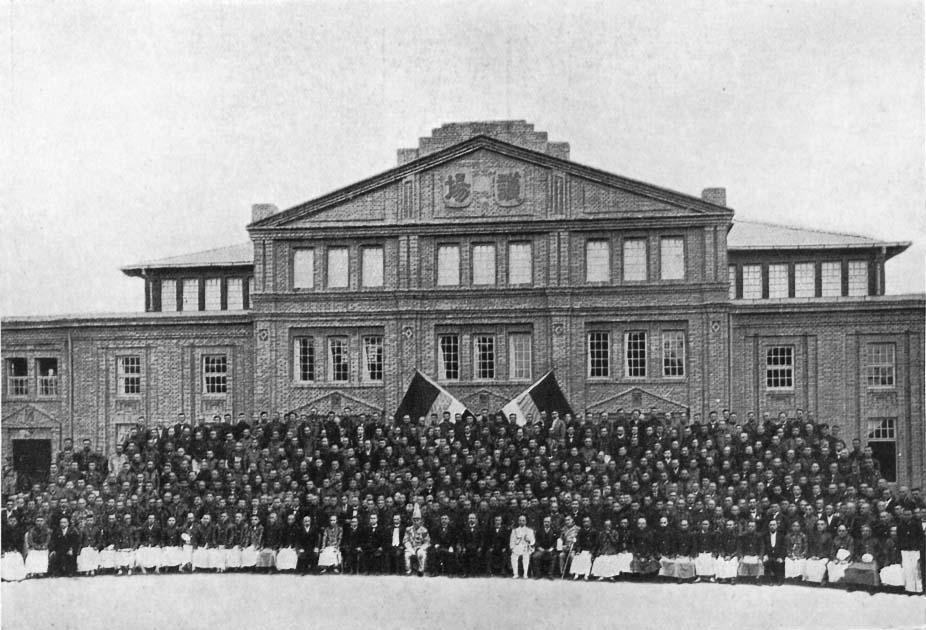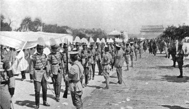 The Manchu people, who belong to the Mongol or Turanian Group, number at the maximum five million souls. Their distribution at the time of the revolution of 1911 was roughly as follows: In and around Peking say two millions; in posts through China say one-half million,—or possibly three-quarters of a million; in Manchuria Proper—the home of the race—say two or two and a half millions. The fighting force was composed in this fashion: When Peking fell into their hands in 1644 as a result of a stratagem combined with dissensions among the Chinese themselves, the entire armed strength was reorganized in Eight Banners or Army Corps, each corps being composed of three racial divisions, (1) pure Manchus, (2) Mongols who had assisted in the conquest and (3) Northern Chinese who had gone over to the conquerors. These Eight Banners, each commanded by an "iron-capped" Prince, represented the authority of the Throne and had their headquarters in Peking with small garrisons throughout the provinces at various strategic centres. These garrisons had entirely ceased to have any value before the 18th Century had closed and were therefore purely ceremonial and symbolic, all the fighting being done by special Chinese corps which were raised as necessity arose.