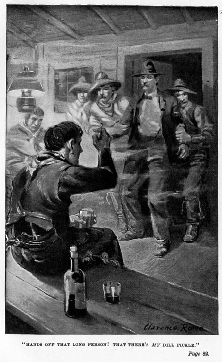 "Back up, Pilgrim," was his quiet way of making known his purpose. "Yuh can't drink on my money, old-timer, nor use a room that I'm honoring with my presence. Just right now, I'm here. It's up to you to back out—away out—clean outside and across the street."