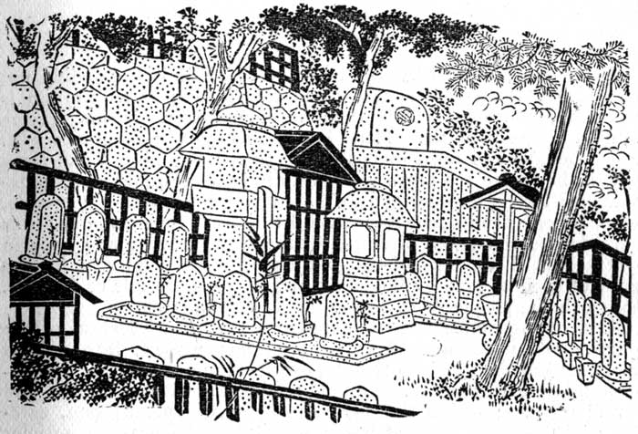In the midst of a nest of venerable trees in Takanawa, a suburb of Yedo, is hidden Sengakuji, or the Spring-hill Temple, renowned throughout the length and breadth of the land for its cemetery, [pg 3] which contains the graves of the Forty-seven. Rônins,2 famous in Japanese history, heroes of Japanese drama, the tale of whose deeds I am about to transcribe.