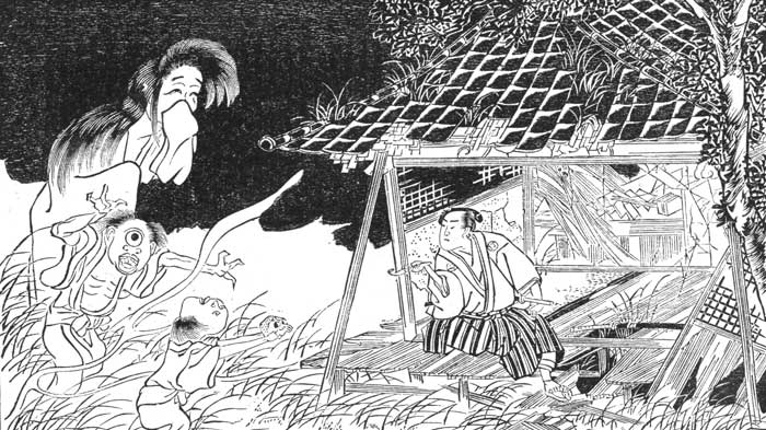 Footnote 58: (return)Tengu, or the Heavenly Dog, a hobgoblin who infests desert places, and is invoked to frighten naughty little children.
