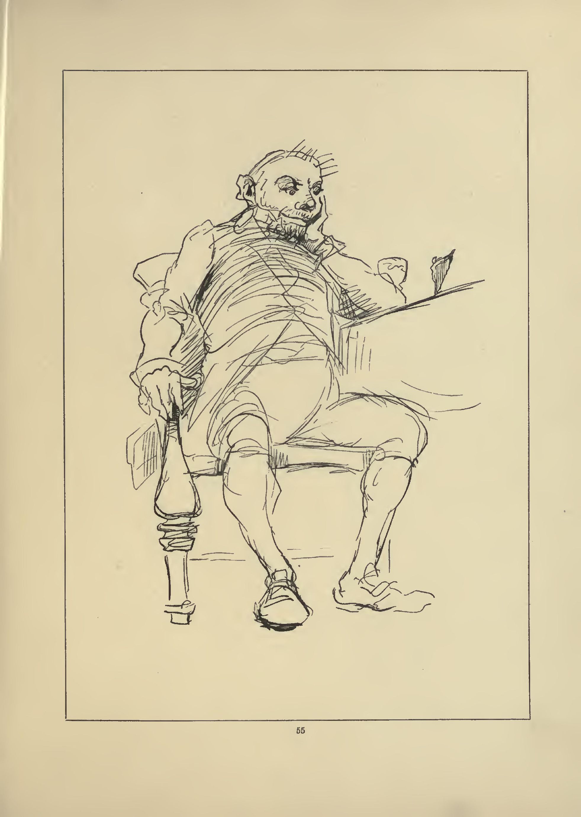 Down he crook'd his monstrous knees, and rested his hip-