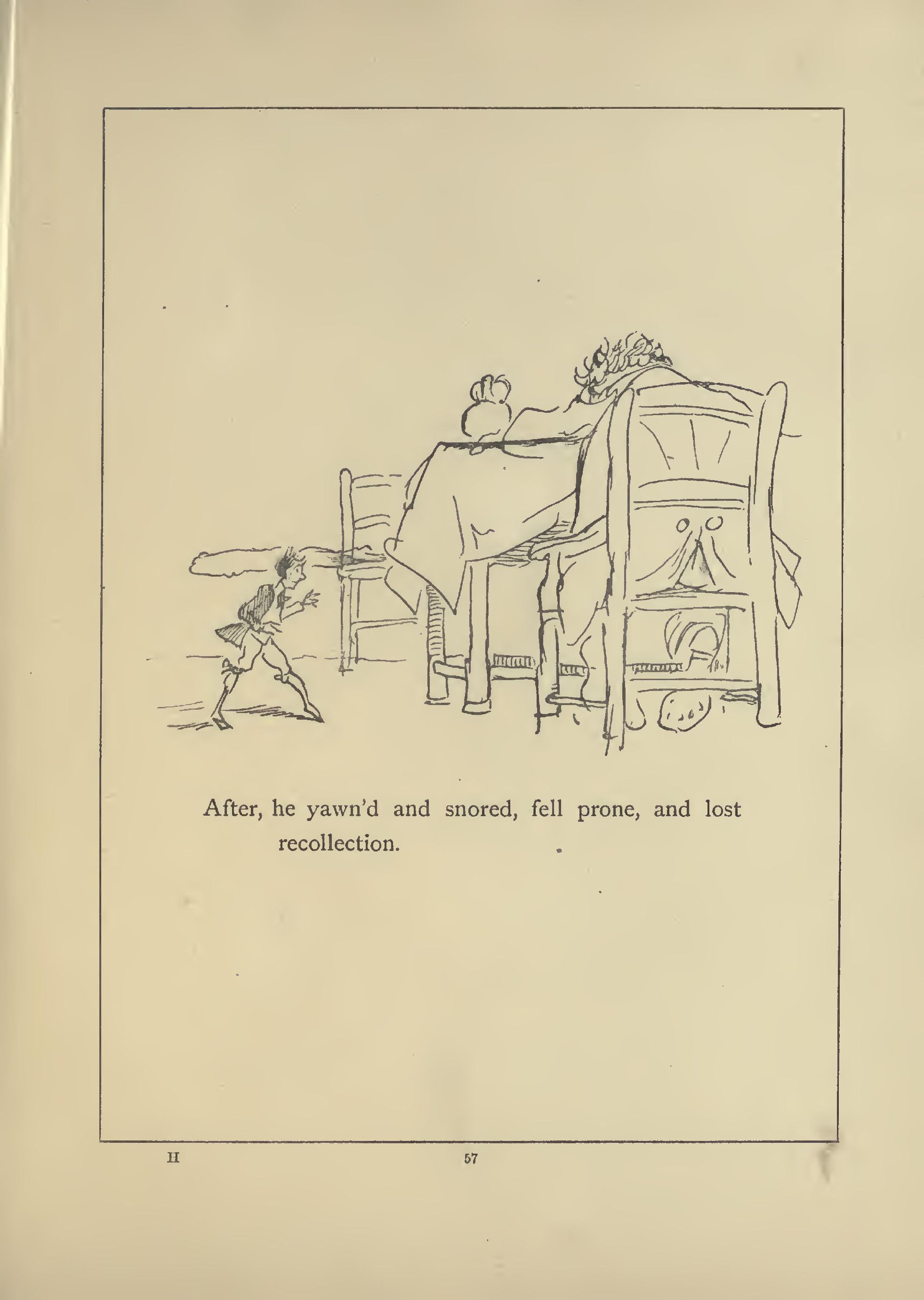 After, he yawn'd and snored, fell prone, and lost recol-