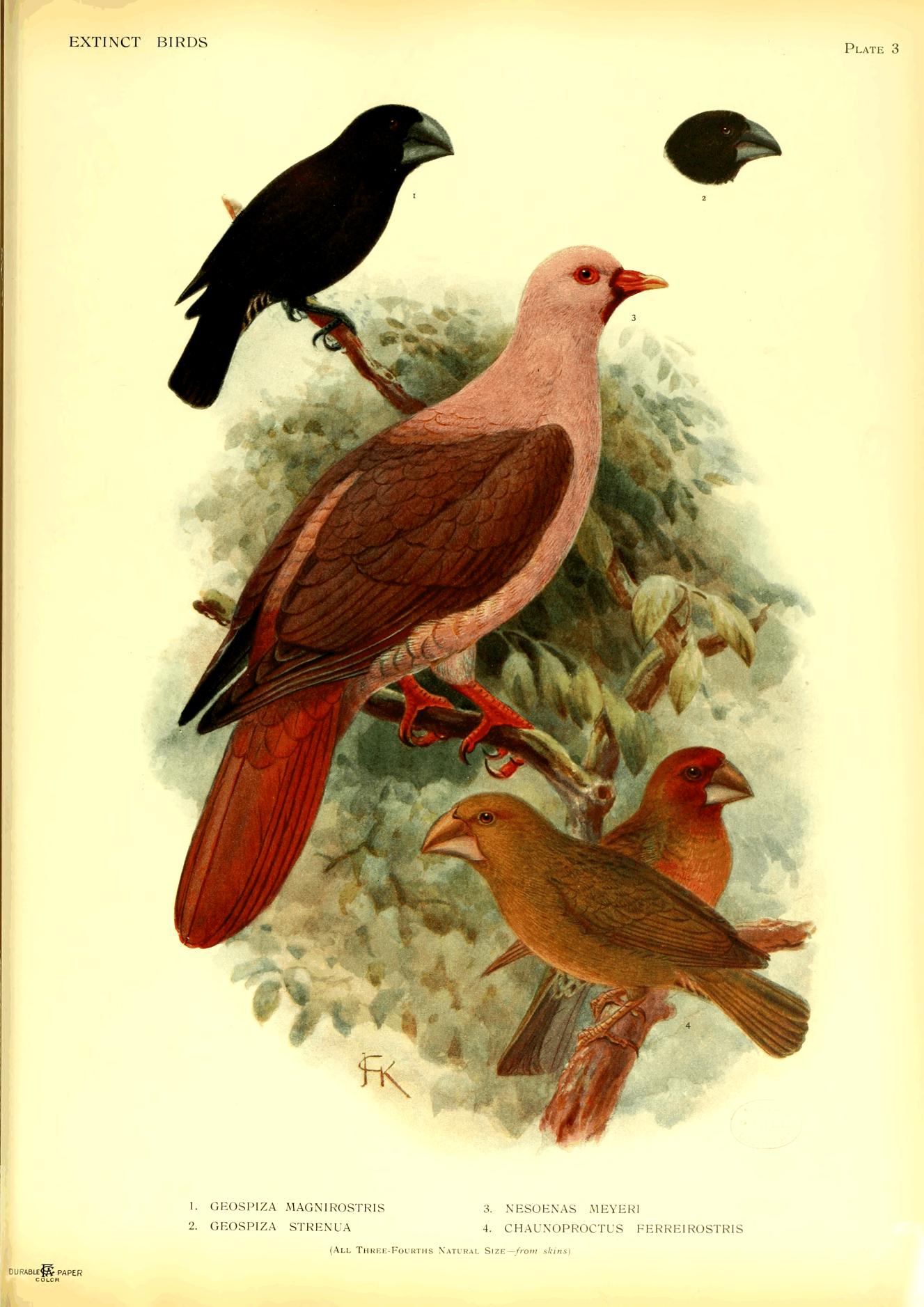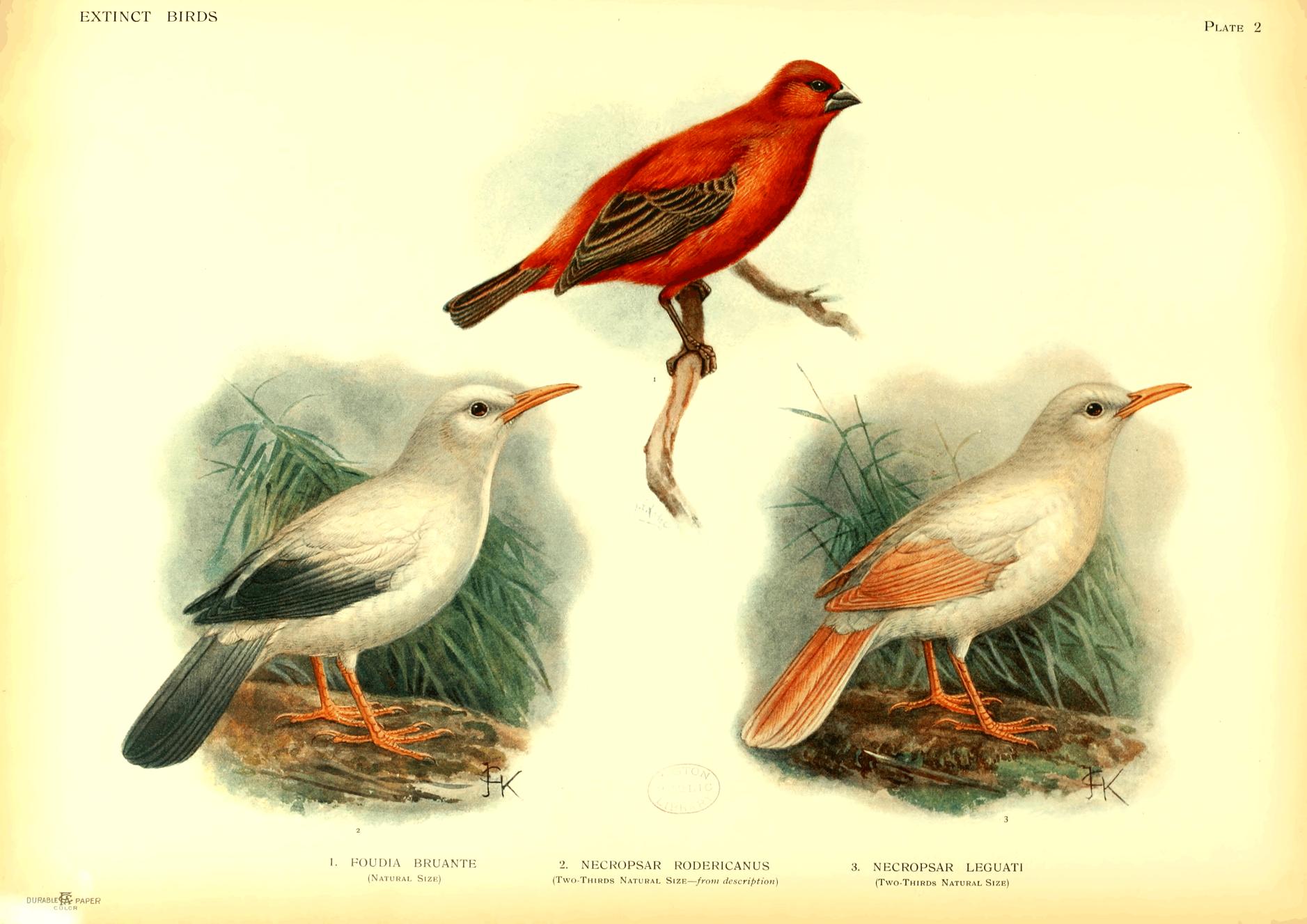 The cause of recent extinction among birds is in most cases due directly or indirectly to man, but we also have instances of birds becoming extinct for no apparent reason whatever.