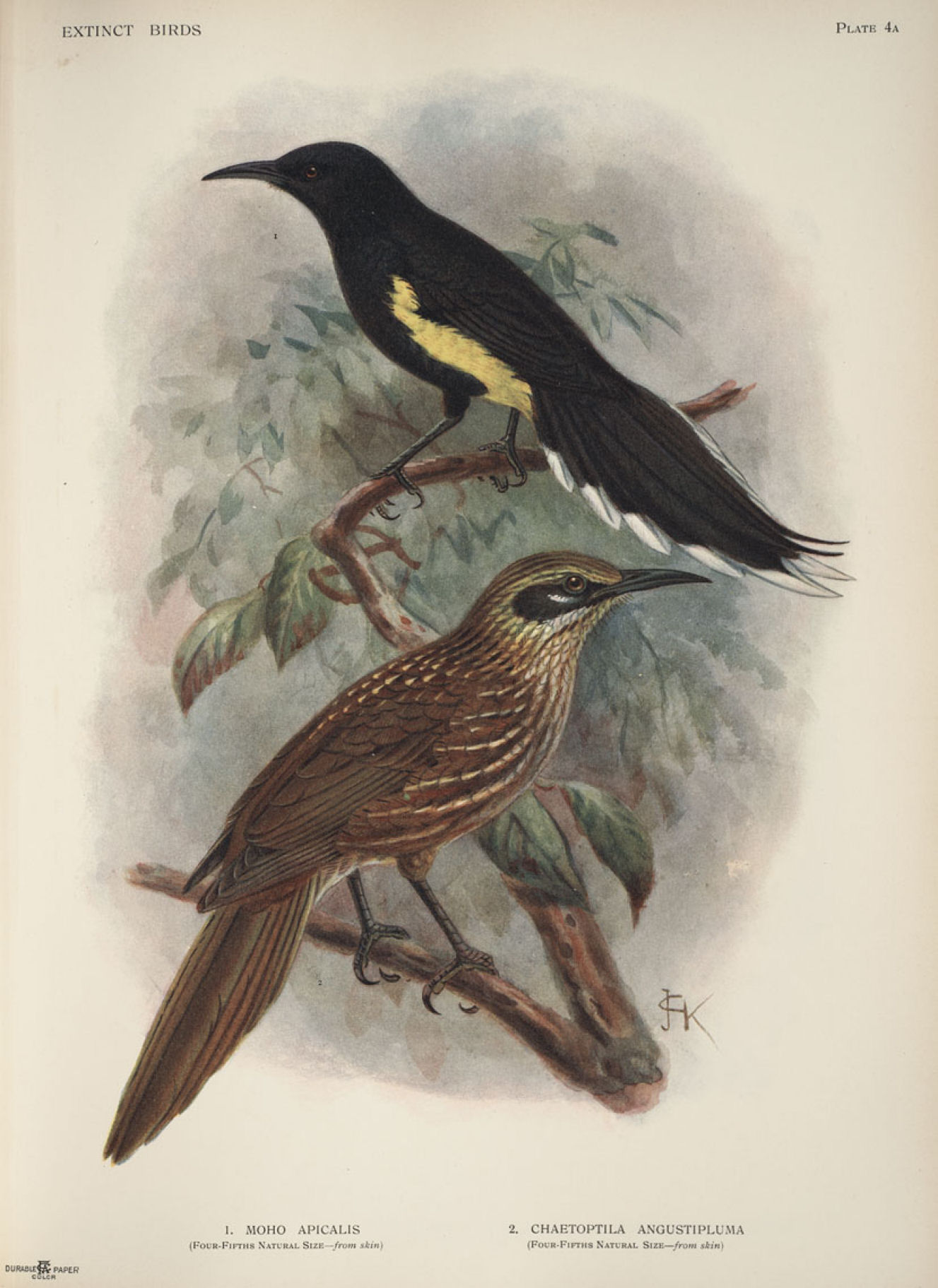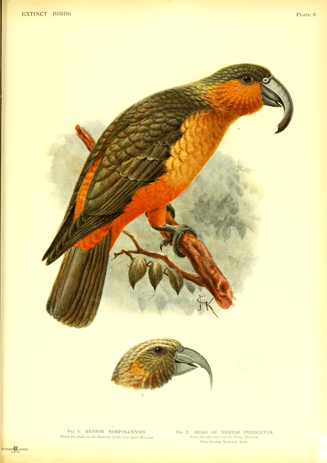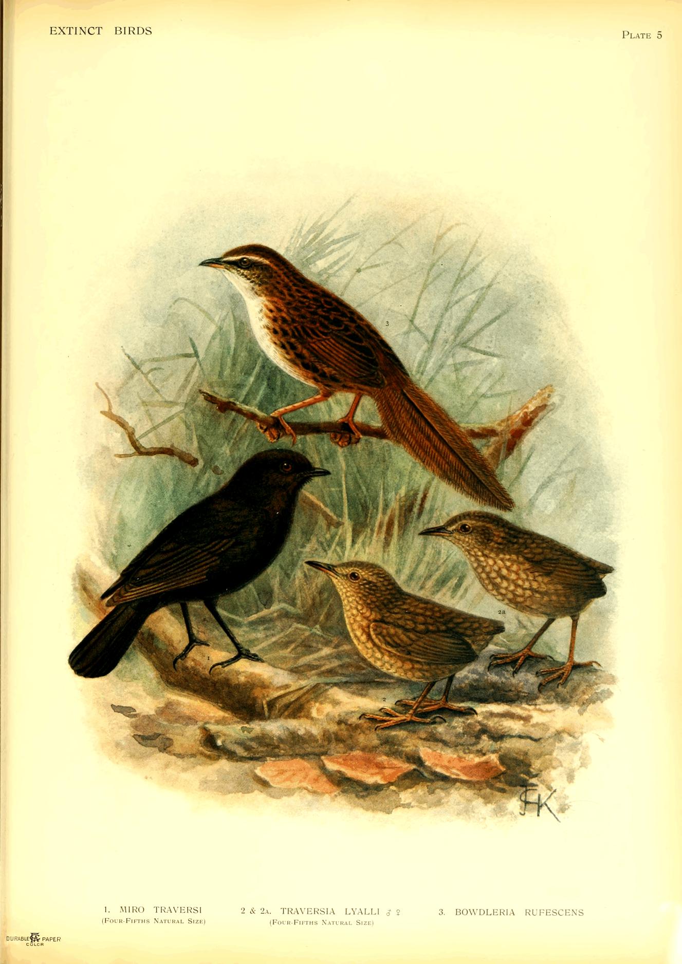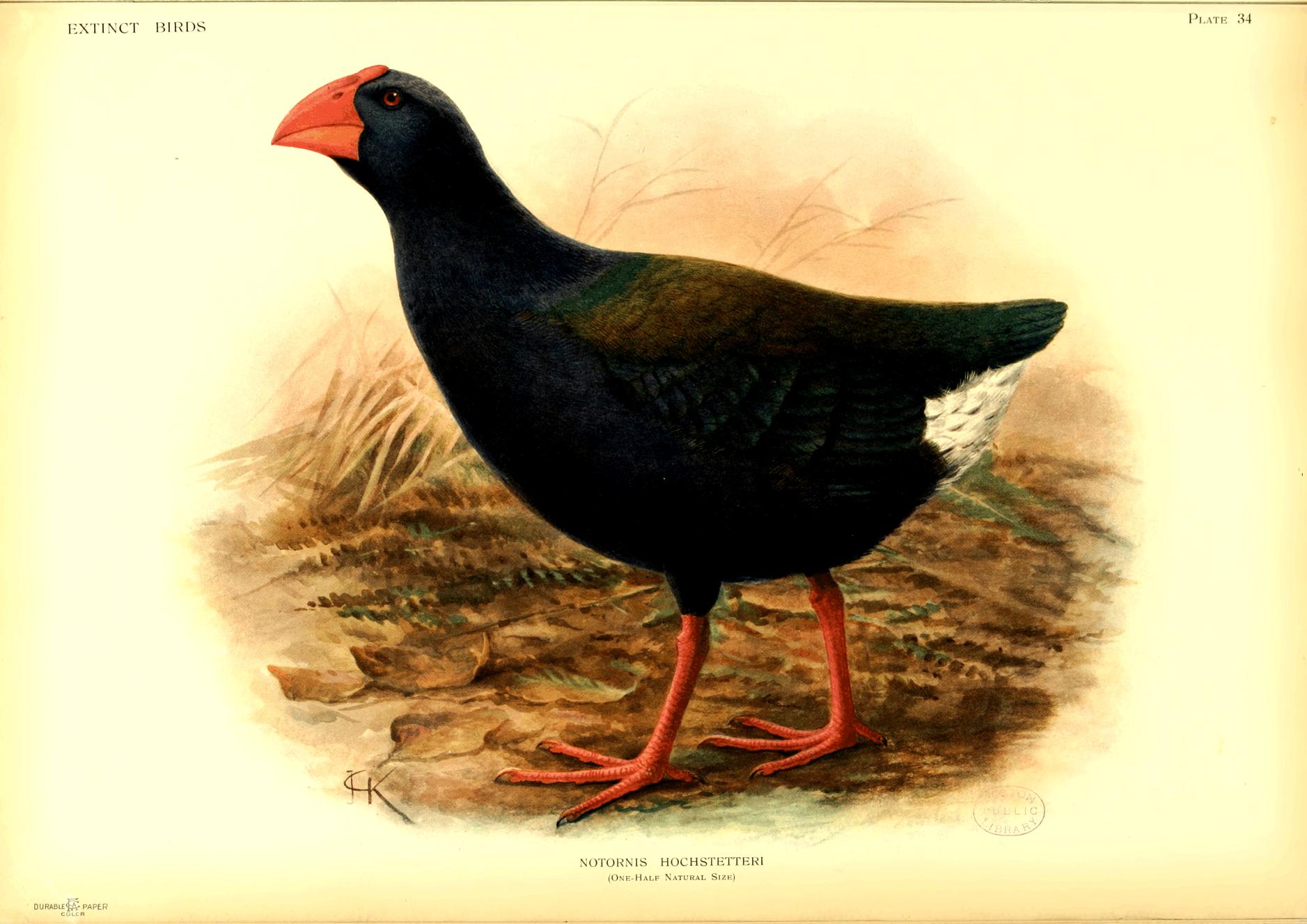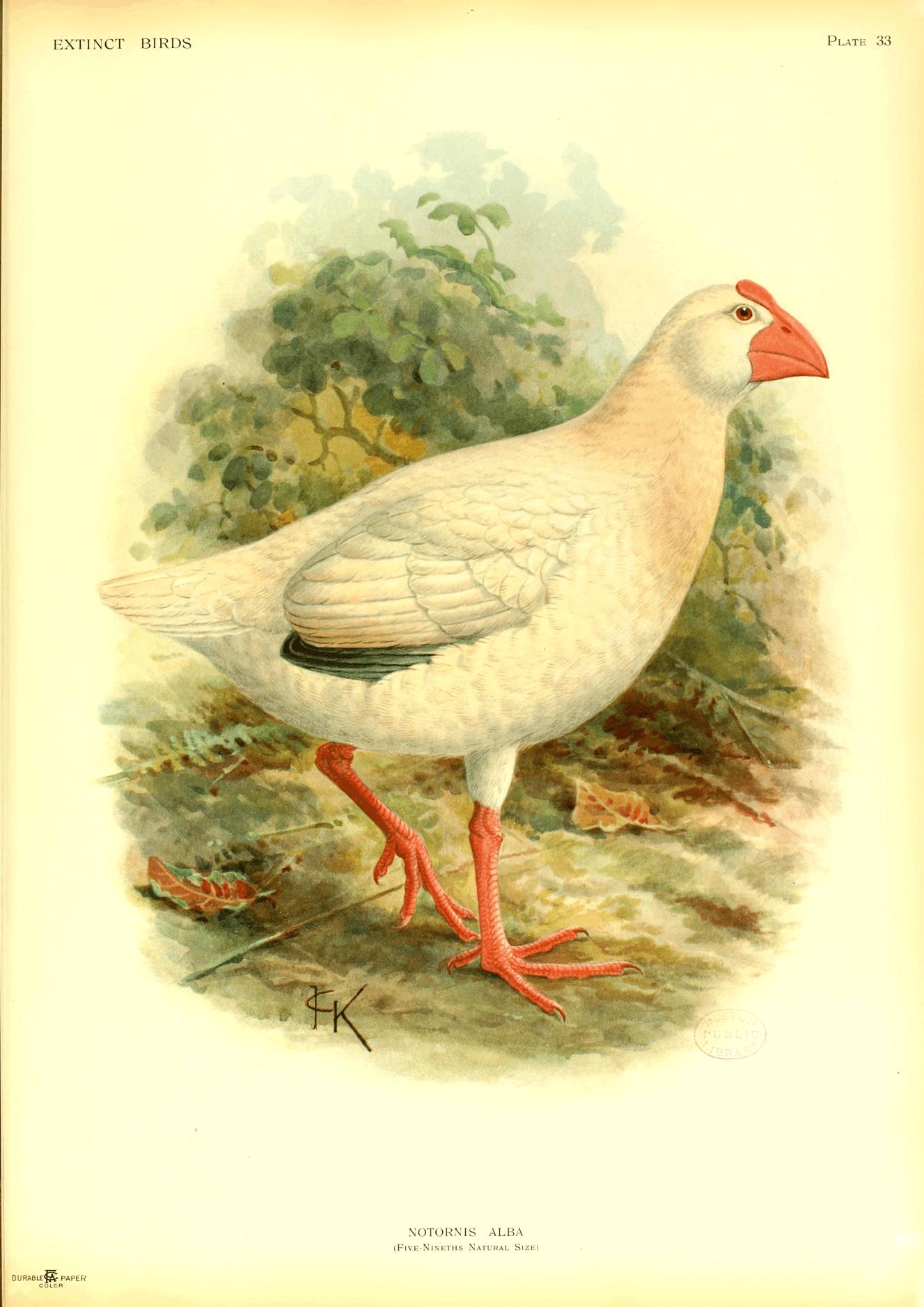 On the whole, this book is confined to species actually known to be extinct, but a few are included of which a small number is still known to exist, because firstly there seems no doubt that they will vanish soon, and secondly, as in the case of Notornis, it was necessary to clear up certain misconceptions and contradictory statements. In the case of a few species believed to be quite extinct, it is possible that some individuals may still exist in little known parts of their range, while on the other hand it is more than likely that several of the species referred to in my lecture (Proc. Orn. Congress pp. 191-207, 1907) as threatened with destruction, have already ceased to live. This may also be the case with some birds not alluded to at all.