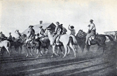 As we head into the green heights around Plymouth, there is one excited old Colonist, buttonholing everyone in turn, shouting with eager irony, “Saw you ever veldt like yon green hills?” And as a fog of driving sleet bursts like[500] a blizzard on us, a mad heart–choking cheer goes up of joy to see real snow again.