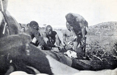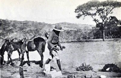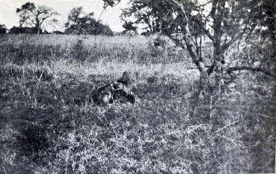 7th December.—We got into broken, mountainous, and bushy country, and descended the Devil’s Pass, a hundred and seventeen miles from Salisbury a long descent among granite koppies and shady woods. A lion had been seen on the road the previous day here, but we saw nothing, though we used all our eyes. I biked the afternoon trek, and got thoroughly drenched by a downpour in doing so. Next day I went to look for lions in most liony–looking country, but only saw one solitary steinbuck—which I shot.