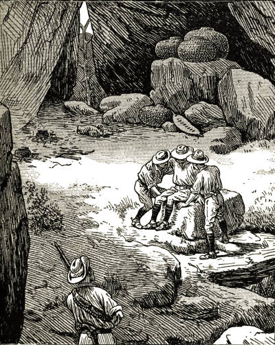 10th December.—The General and our party went out to the Pennalonga Mine, seven miles through pretty wooded hills, every one of which showed signs of having been prospected. At the[485] mine, Jeffreys, the manager, and his bright bride did us right hospitably, and after lunch we went over part of the mine. Their working is simple: having found the reef in a watercourse in the mountain–side, they have followed it with “drives” both ways, and have met it with other drives from the opposite side of the hill. The ore (of “gallina”) containing something much over 20 oz. of silver and 11 dwt. of gold, a lot of it very pretty with the garnet–like crystals of chromate of lead. We walked into one adit about four hundred feet, and saw the working; cross–cuts showed the reef eighteen feet across. The air was not very good, and we could with great difficulty keep our candles alight.