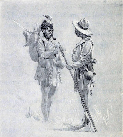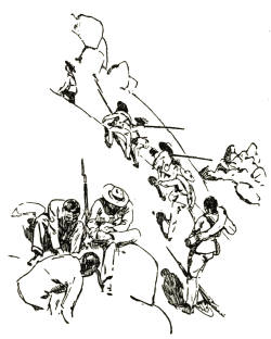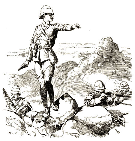 The enemy would come out on the rocks before a fight, and dance and work themselves up into a frenzy, shouting all sorts of epithets and insults at the troops.