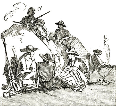 Although we found rooms engaged for us at one of the hotels, we prepared to camp just outside the town. And we certainly are most comfortable[483] in camp. The General lives in my little Cabul tent, and we other four fill a bell–tent. Our dining–room is a space between two waggons, roofed in with a roomy “buck–sail.” Our table is a door laid on a trestle bedstead from a looted farm. And when we dine, we might imagine ourselves in a room, did not the lanterns light up in strong relief the massive wheels and under–carriages of the waggons on either side of us. Our conversation, too, is nearly drowned by the crunching of the mules feeding at their manger, which is hung along the dissel–boom (pole), and he who sits at the head of the table stands a good chance of being landed by a kick which he is well within reach of.