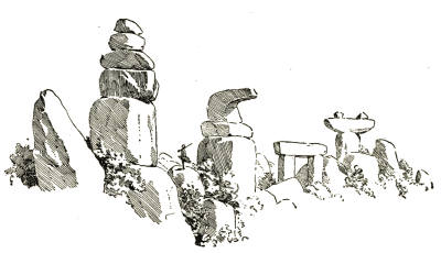 Near Fort Haynes were said to be some ancient ruins—so we rode over to see them. There were the remains of an old kraal, strongly fortified with a circular stone wall, a wide ditch, and a triple circle of trees which are now very big.[481] It was certainly an ancient ruin, but not of the class of the Zimbabye ruins near Victoria. The General even said he had seen better stone walls in the Cotswold country. But in a neighbouring koppie, which was the burial–place of Makoni’s father,—and a very sacred place with the natives,—we found a bit of wall made of square–cut stones neatly fitted together, much more like the Zimbabye style. The rocks within this wall formed some natural circular enclosures; one rock stood up on end, and several of them were pock–marked. I don’t think that Bent mentions whether the stones at Zimbabye are also pock–marked, but Ross, the Native Commissioner with us, said they were. Well! the Phœnician temple at Hadjiar–Kim in Malta, and the Giants’ Tower in Gozo, both contain pock–marked stones and rocks. These are supposed to be artificially worked to represent the firmament. Perhaps this should be another clue as to who were the builders of Zimbabye and other prehistoric ruins in Mashonaland, since they seem to have treated pock–marked stones as sacred.