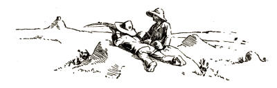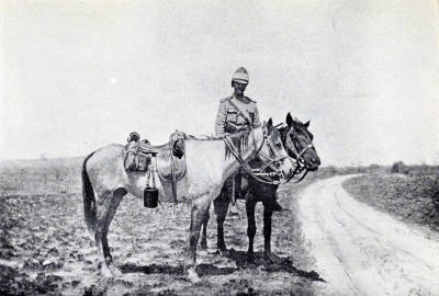 I gave up the horse this day in favour of the bike, and had a most enjoyable ride. Bikes have been issued to the police to use in place of horses, as the latter are hard to feed, and die in large numbers every year of horse sickness. But I think they ought to have tandem bikes,—not single ones,—because police should always go in pairs on long patrols. On a tandem one man can watch the ground and steer, while the other can look about for enemies and can use his revolver—which cannot be done by single bikers.