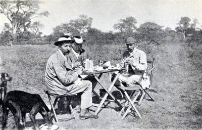 When we had outspanned near Ballyhooley (a place almost as pretty as its original in Ireland), and had just finished dinner, Lord Grey arrived there too, ahead of his waggons, with Lady Grey and Lady Victoria, and Howard, and they came and dined with us, pending arrival of their outfit. The ladies are bound for Beira, and for the ship that we hope to go in.