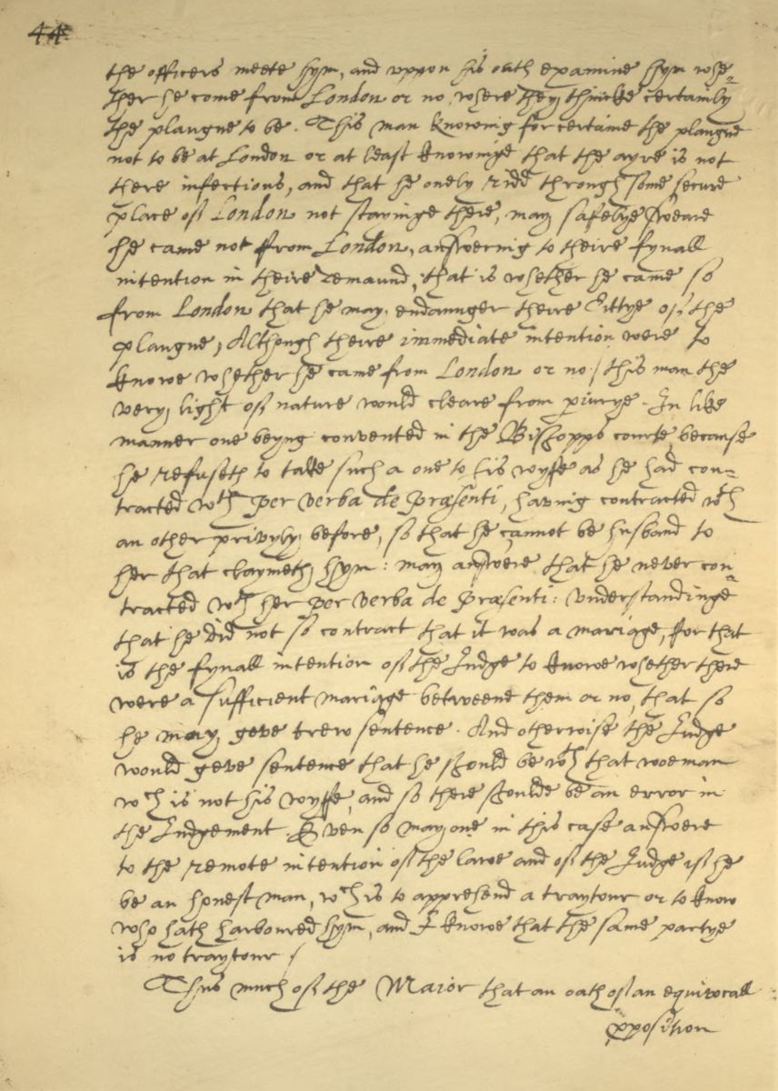 A page of the MS. intitled "A Treatise against Lying, &c.", formerly belonging to Francis Tresham, of which the handwriting was attributed by his brother, William Tresham, to William Vavasour. Now in the Bodleian Library. (Laud MSS. 655, folio 44.)