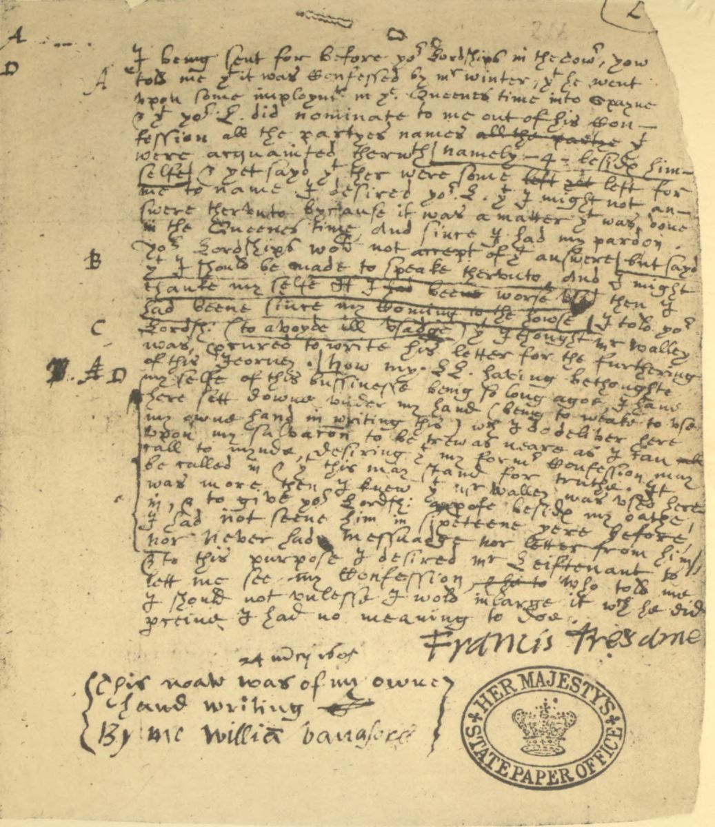dictated and signed by Francis Tresham when dying in the Tower,