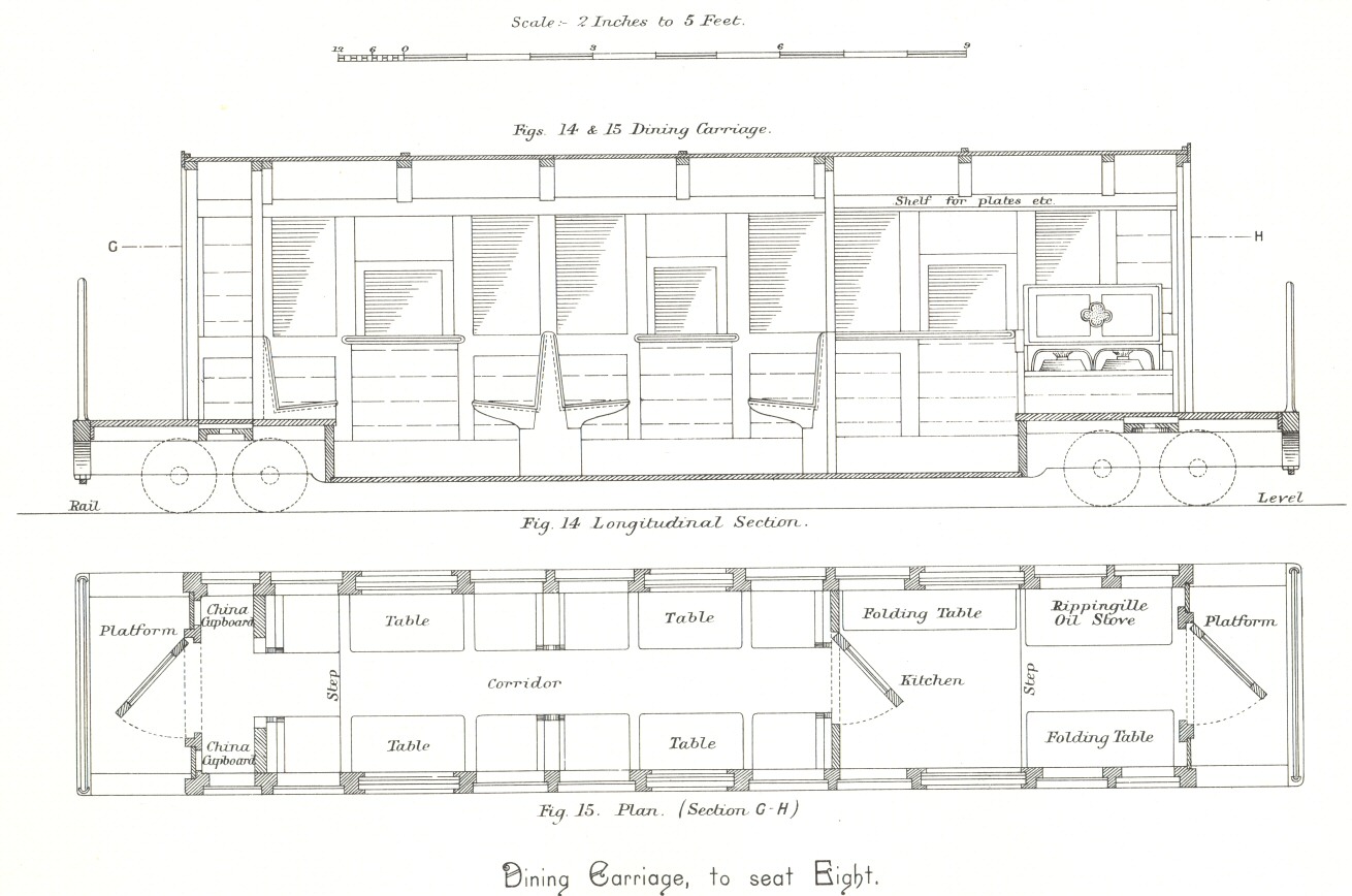 Arrangement drawing of Dining Carriage to seat eight.