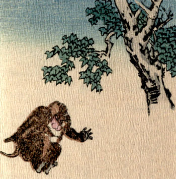 When they reached the shore of Monkey-Land again,[17] the monkey bounded off the Jelly-Fish’s back, and up to the topmost branch of the chestnut-tree in less than no time. Then he said: “I do not see my liver here. Perhaps somebody has taken it away. But[18] I will look for it. You, meantime, had better go back and tell your Master what has happened. He might be anxious about you, if you did not get home before dark.”