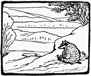 Cottontail had seen Tommy Brock passing in the distance. Asked whether her husband was at home she replied that Tommy Brock had rested twice while she watched him.[Pg 29]