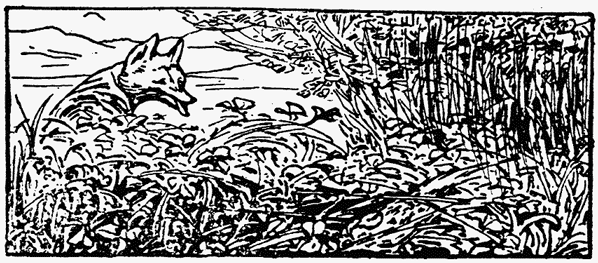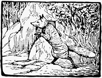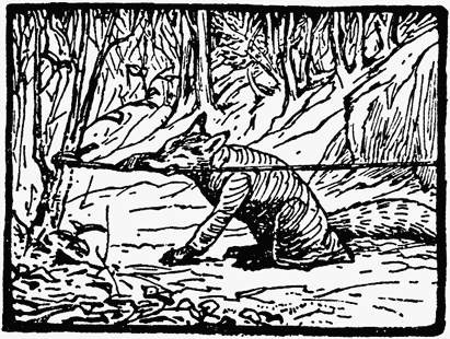 Mr. Tod slapped his stick upon the earth and fumed; he guessed where Tommy Brock had gone to. He was further annoyed by the jay bird which followed him persistently. It flew from tree to tree and scolded, warning every rabbit within hearing that either a cat or a fox was coming up the plantation. Once when it flew screaming over his head—Mr. Tod snapped at it, and barked.
