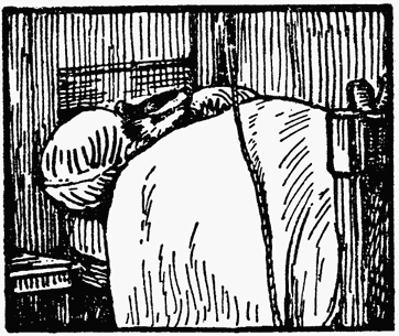 Mr. Tod's proceedings were peculiar, and rather uneasy, (because the bed was between the window and the door of the bedroom). He opened the window a little way, and pushed out the greater part of the clothes line on to the window sill. The rest of the line, with a hook at the end, remained in his hand.