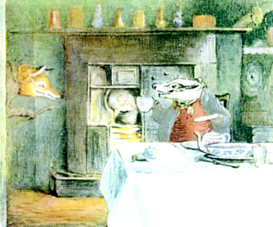Then Mr. Tod rushed upon Tommy Brock, and Tommy Brock grappled with Mr. Tod amongst the broken crockery, and there was a terrific battle all over the kitchen. To the rabbits underneath it sounded as if the floor would give way at each crash of falling furniture.