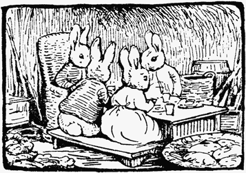 After quarrelling at supper, Flopsy and old Mr. Bouncer had passed a sleepless night, and quarrelled again at breakfast. Old Mr. Bouncer could no longer deny that he had invited company into the rabbit hole; but he refused to reply to the questions and reproaches of Flopsy. The day passed heavily.[Pg 88]